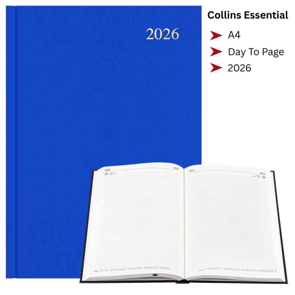 Stay organised throughout 2026 with the Collins Essential A4 Diary. Featuring a Day to a Page (1DTP) layout, this diary offers ample writing space for appointments, notes, and daily planning.