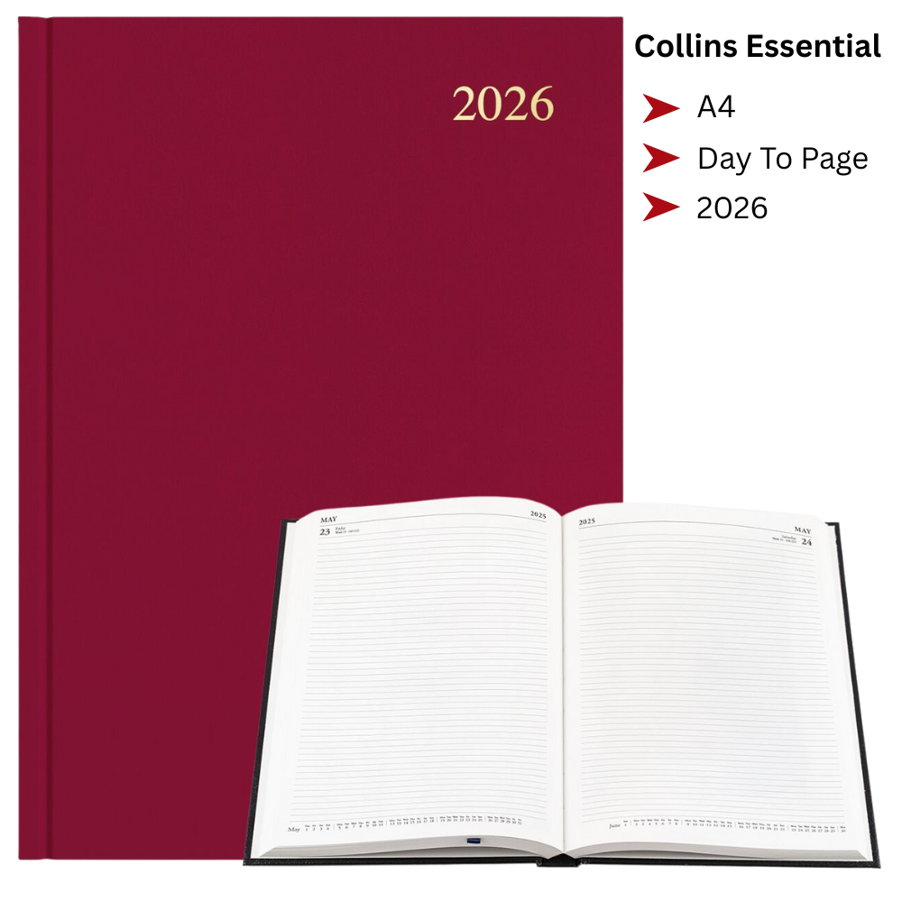 2026 Collins Essential A4 Diary Diaries Day To Page ESSA41.78 - Maroon