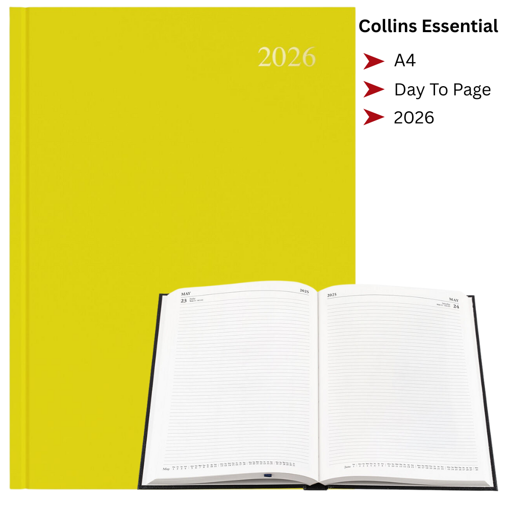 Stay organised throughout 2026 with the Collins Essential A4 Diary. Featuring a Day to a Page (1DTP) layout, this diary offers ample writing space for appointments, notes, and daily planning.