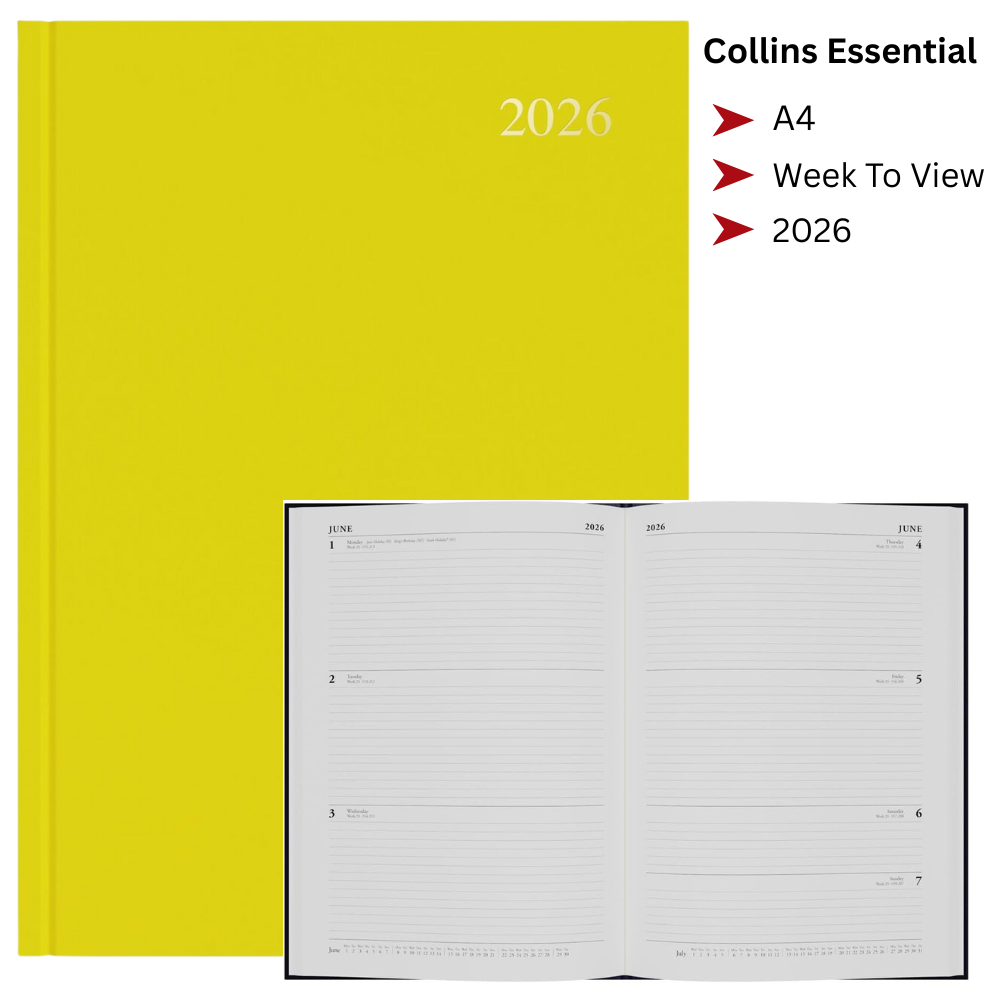 2026 Collins Essential A4 Diary Diaries Week To View ESSA43.45 - Yellow