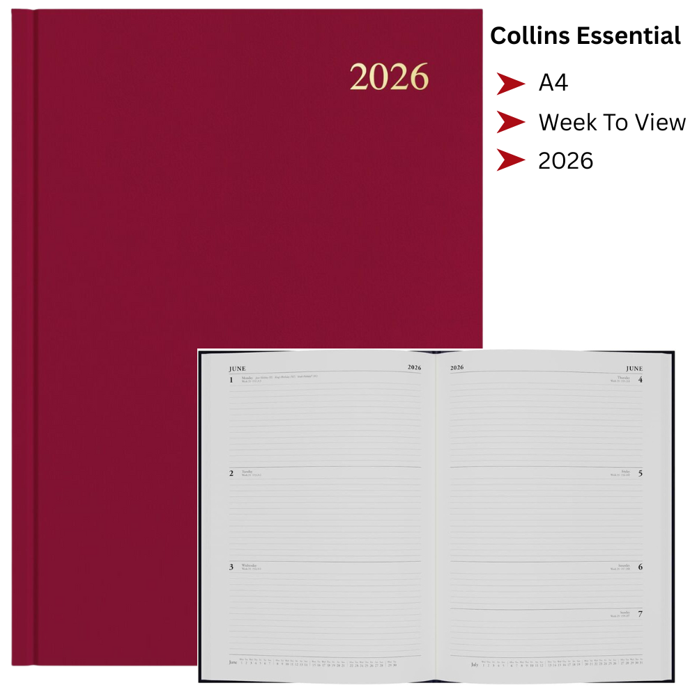 2026 Collins Essential A4 Diary Diaries Week To View ESSA43.78 - Maroon