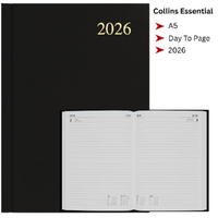 2026 Collins Essential A5 Diary Diaries Day To Page ESSA51.99 - Black