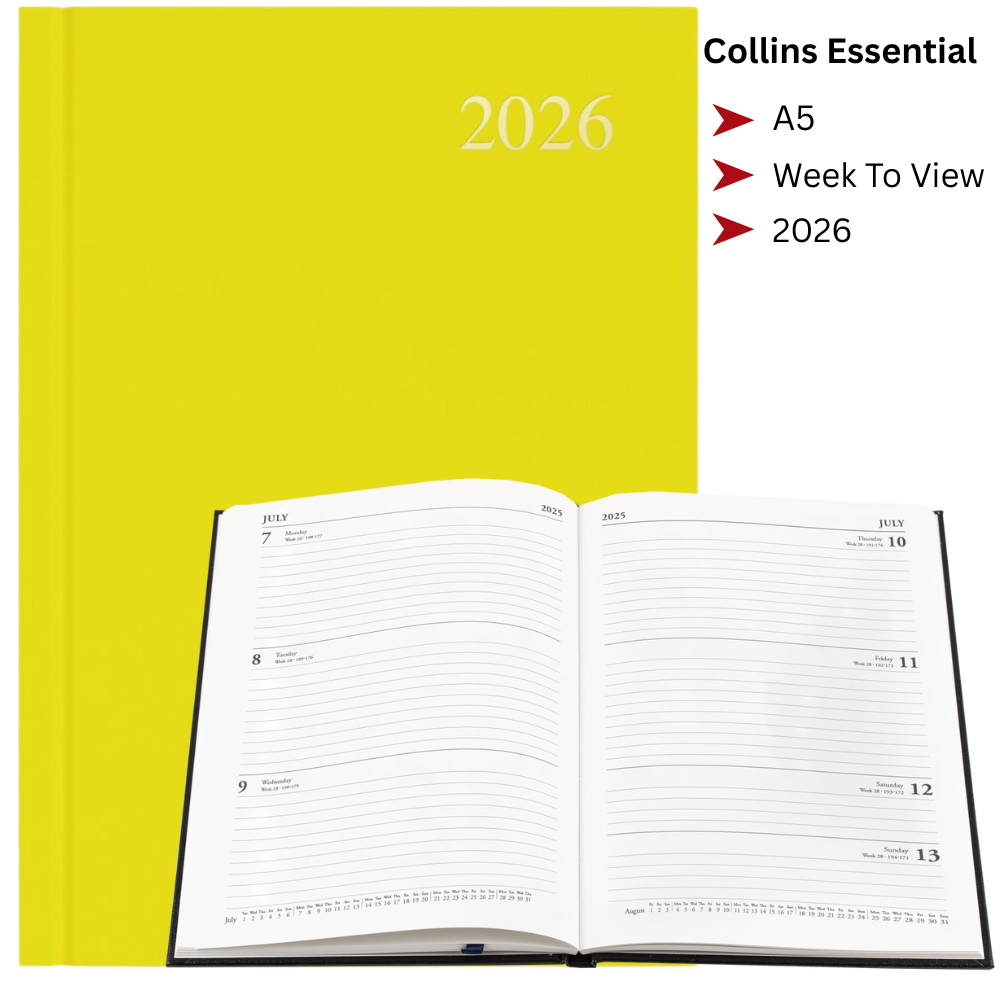 2026 Collins Essential A5 Diary Diaries Week To View ESSA53.45 - Yellow