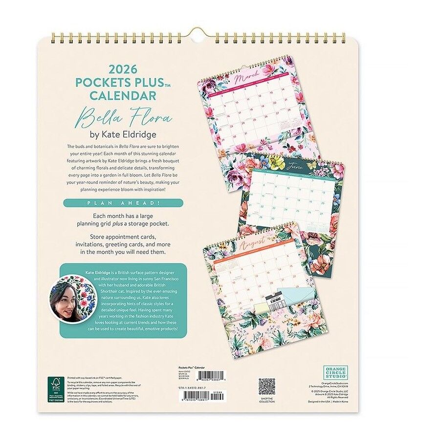 Add beauty and organisation to your year with the 2026 Orange Circle Wall Calendar Pocket Plus – Bella Flora. Featuring elegant floral artwork and a practical pocket design, this calendar is both decorative and functional — perfect for home or office use.