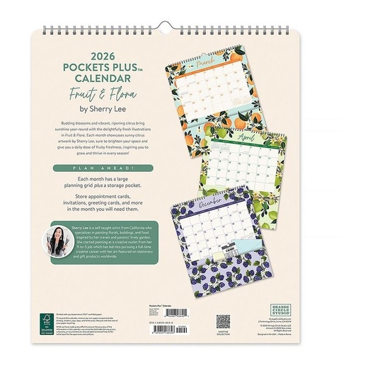 Plan your year with colour and creativity using the 2026 Orange Circle Wall Calendar Pocket Plus – Fruit & Flora.