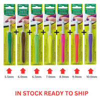 The handles of each size of the Clover Amour Crochet hooks are differing bright and fun colours for easy size identification.