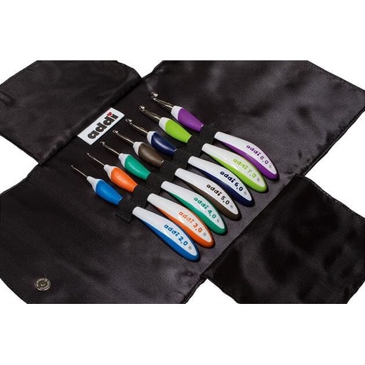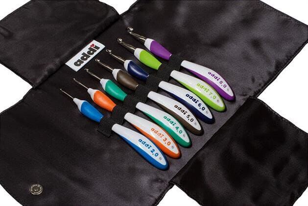 Addi AddiSwings Case Crochet Hooks Set Assorted Sizes 2-8mm Pouch 7 Piece Set in Case - MAA640.SET