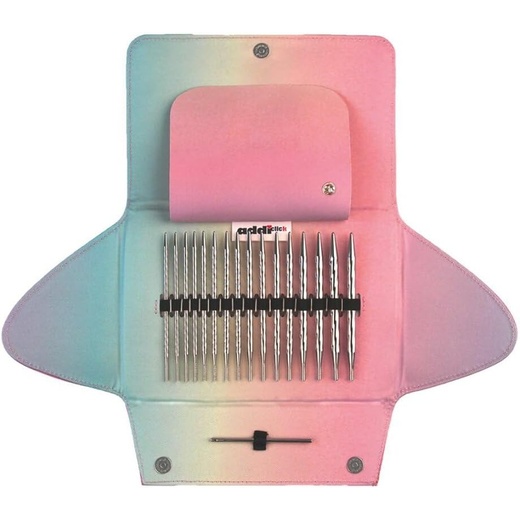 For knitting enthusiasts who like to stay flexible, the addiClick Unicorn set is the ultimate choice. This set includes a variety of interchangeable lace needle tips and cords that allow you to choose the perfect needle and cord length for any project. The set is presented in a pretty storage bag with rainbow colous and unicorn brooch, making it not only functional but also an absolute eye catcher,
