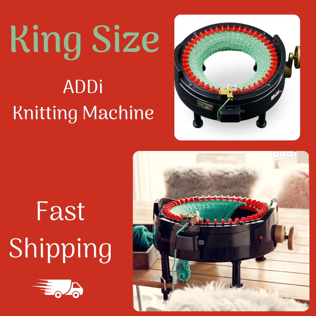 Knit in minutes! This machine will have anyone interested in knitting create a project easily. Quick to learn, watch your knitting creations grow. Even more possibilities, even larger knitted pieces, even more knitting fun! That is what you get with the Addi Express King Size Knitting Machine. With its larger diameter, you can create even more personalised knitted pieces with a few turns of the hand.