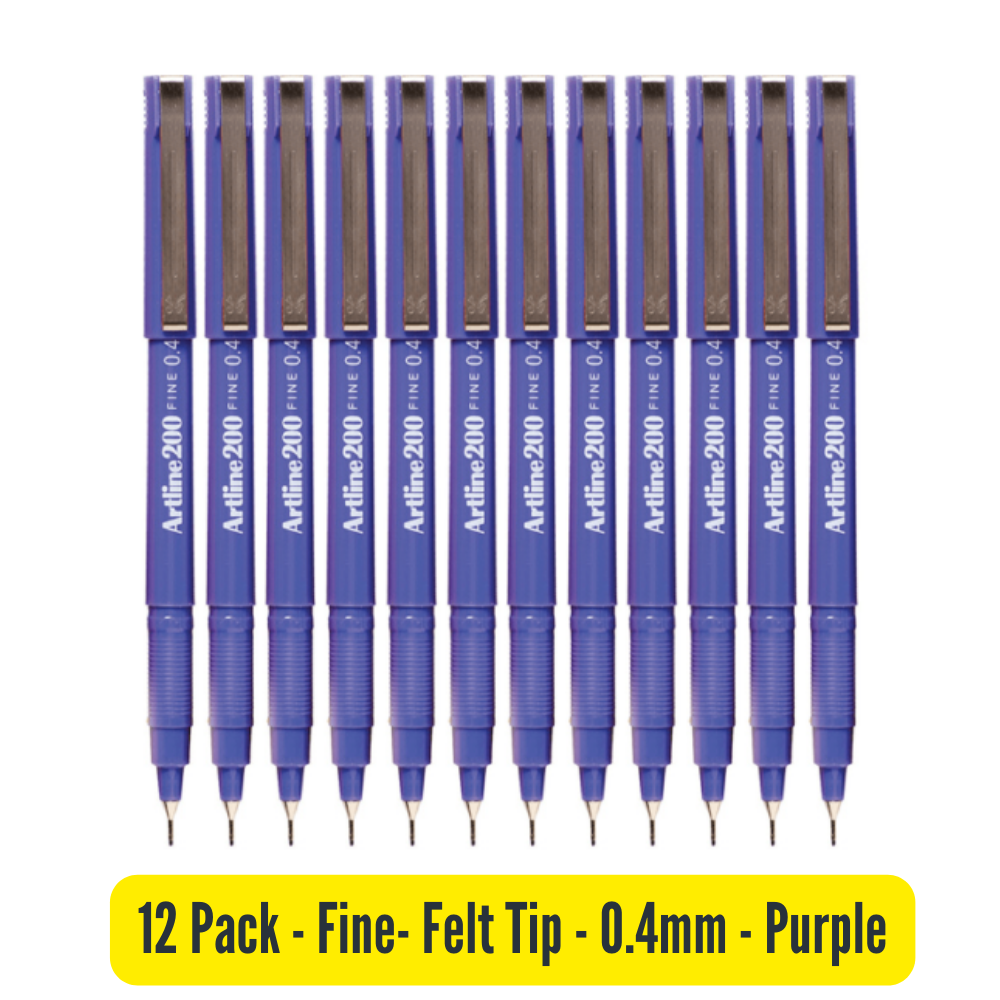 Artline 200 Pen 0.4mm Fineliner Marker Felt Tip Pen PURPLE - 12 Pack