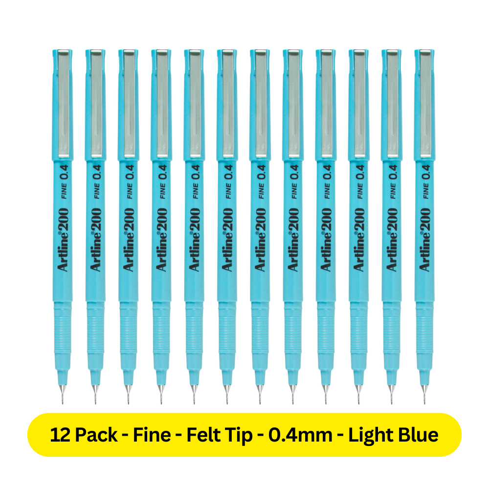 Artline 200 Pen 0.4mm Fineliner Marker Felt Tip Pen LIGHT BLUE 120043 - 12 Pack