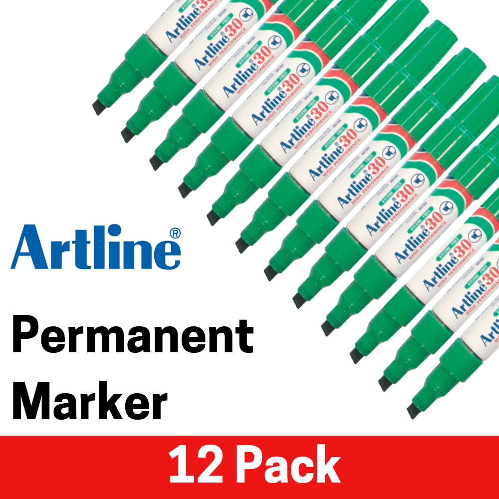 Artline 30 Permanent Marker 5mm Chisel Nib Green - 12 Pack