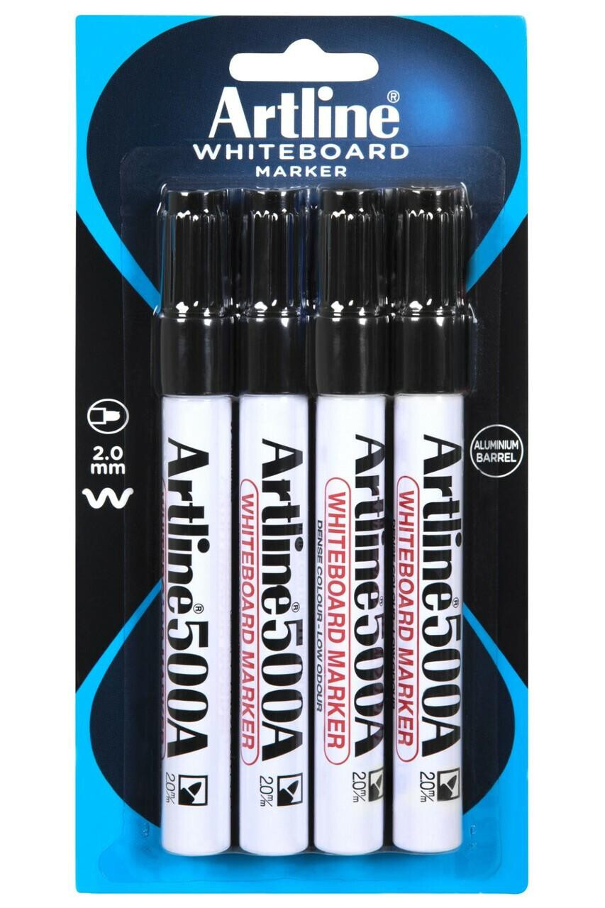 Artline 500A Whiteboard Marker 2mm Bullet Nib Black 4 Pack - 1500714A