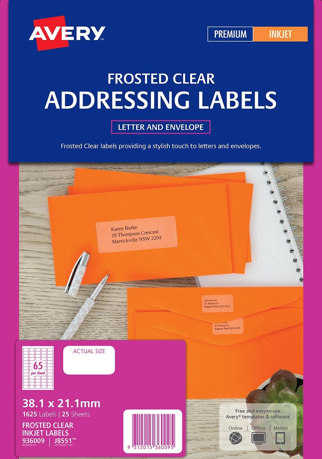 Avery J8567 Label Inkjet Mini Address Clear 65 Per Page 25 Pack - 936009