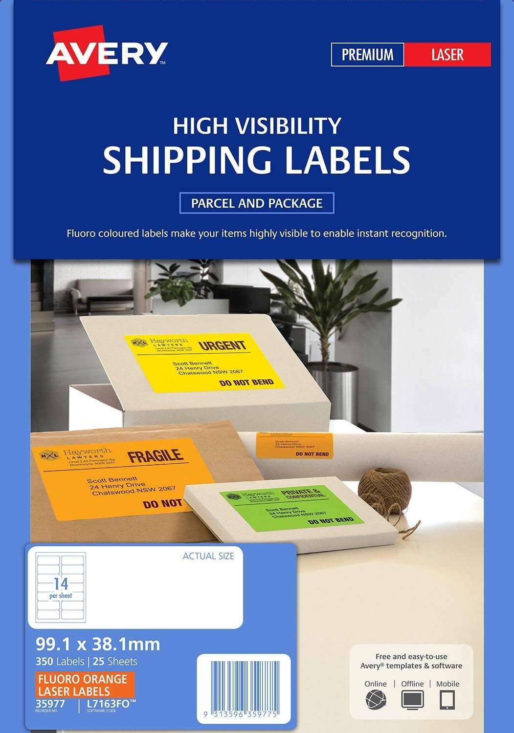 These Avery Fluro Signalling Labels are neon in colour ensuring that important messages on parcels are noticed whilst in transit. They can be printed on using laser printers giving them a neat and legible finish. The adhesive backing is permanent so you can be confident that your label will stay in place.