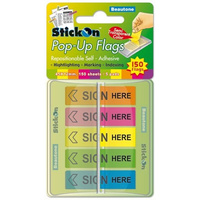 Beautone Stick On Flags Pop-up Sign Here 45x12mm 5 Assorted Pads - 150 Sheets