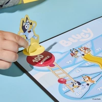 Little ones can go on a climbing and sliding adventure with Bluey and friends in this Chutes and Ladders Bluey edition game. To begin, each player chooses a cardboard character pawn—Bluey, Bingo, Coco, Lucky, Snickers, or Rusty. The first player spins the spinner and moves that number of spaces. Will they land on a ladder to climb or a chute to slide down? This edition of the fun family game also includes see-saw spaces. Players who land on one have a spin-off with another player to determine where they’ll both move. The first player to reach space 100 wins!
