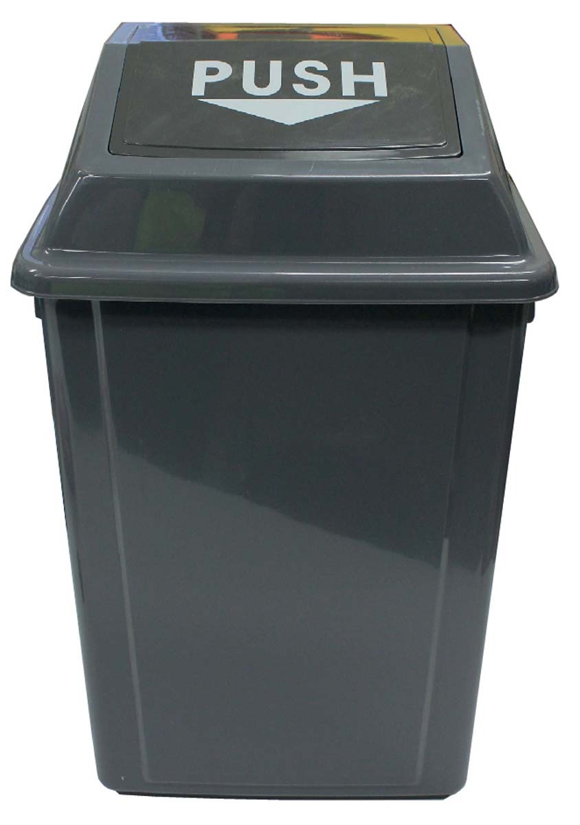 Popular swing lid style bin is ideal for any situation with a spring loaded lid to ensure contents remain inside