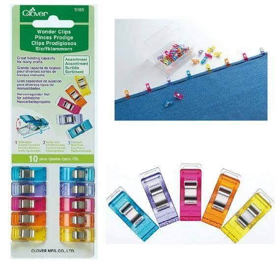 Red wonder clips (10 pack) Clover brand. Ideal for quilters to hold seams together instead of using pins. The clip opens wide to hold layers of fabrics and the clip base is flat for easy feeding to the presser foot. There are seam allowances marked at 1/4" (7mm) and 1/2" (12mm).