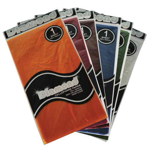 75x100cm Large sheets of brightly coloured cellophane. Suitable for wrapping gifts or for arts and craft.