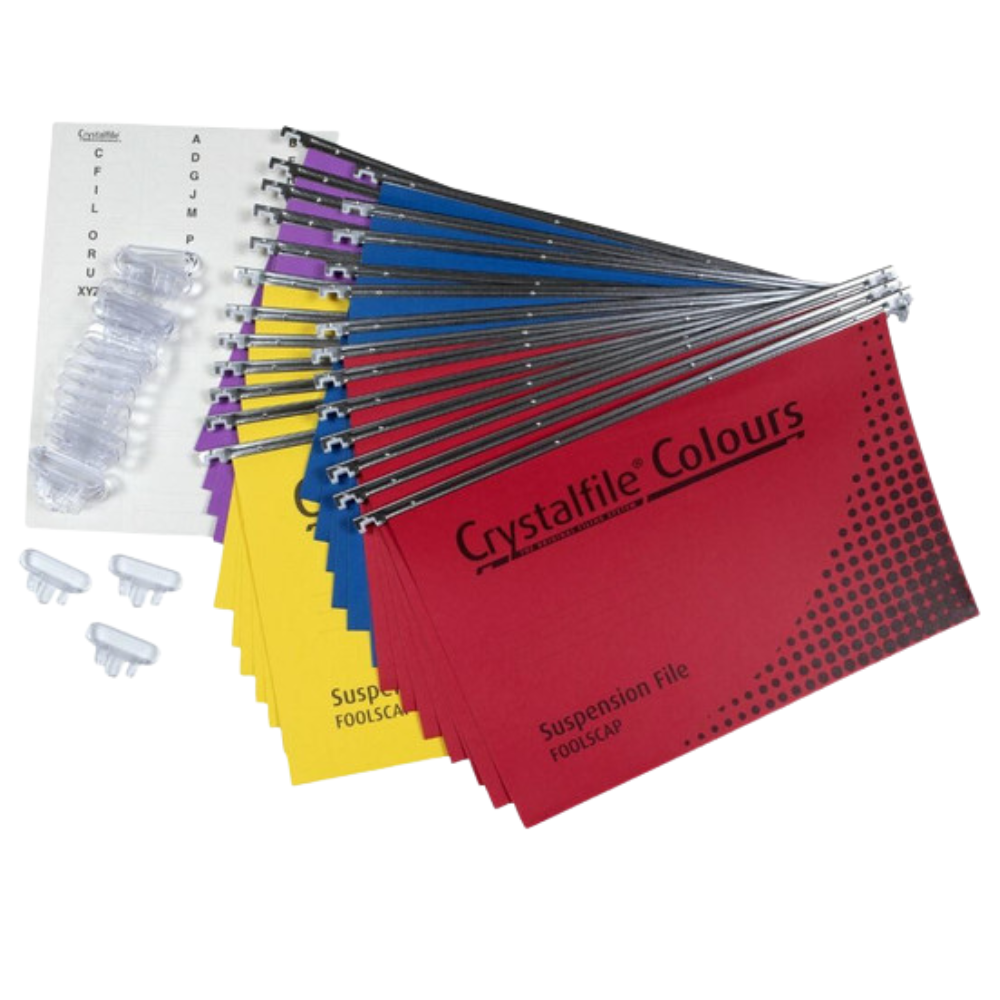 Crystalfile suspension files are the perfect way to store all your important files. Made from manilla board and smooth nylon runners, they are the ideal choice for your suspension filing needs.