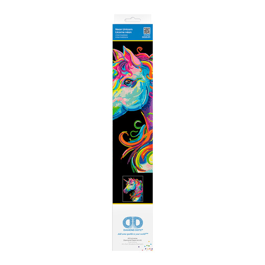 Create a magical and colourful piece of diamond art with the Diamond Dotz Neon Unicorn Diamond Painting Kit. This enchanting design features a majestic unicorn brought to life with glowing neon colours that shine brilliantly against a deep black background. The vibrant rainbow tones highlight the mythical beauty of the unicorn, creating a bold and eye-catching artwork that is perfect for fantasy lovers and creative craft enthusiasts.