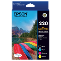 Epson 220 Ink Value Pack Ink Jet T293692 Black, Cyan, Magenta, Yellow