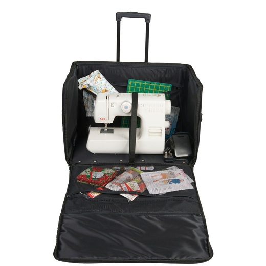 Carry, organise, and protect your sewing setup with confidence using the Extra Large Sewing Machine Trolley Bag on Wheels – Black/White (006107).