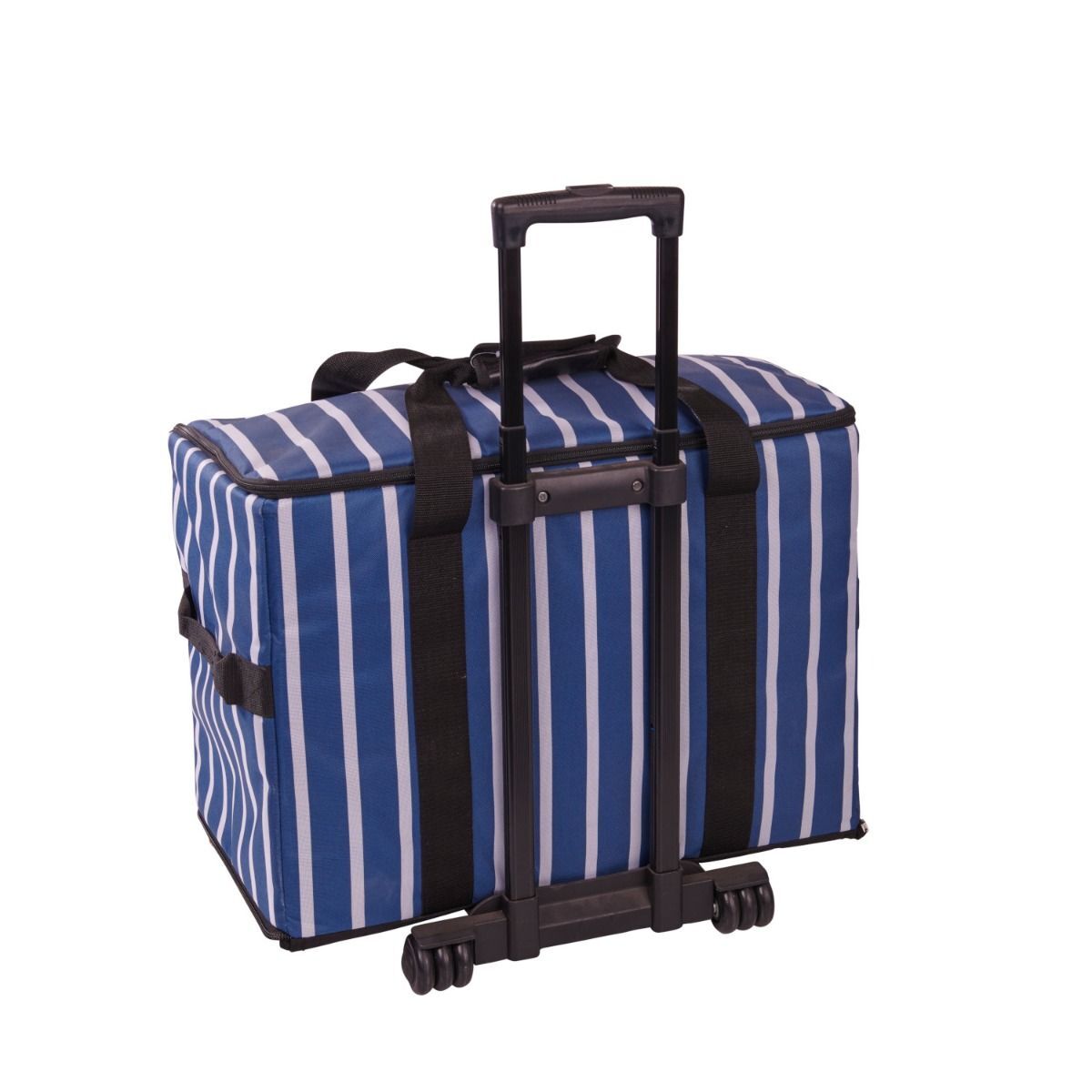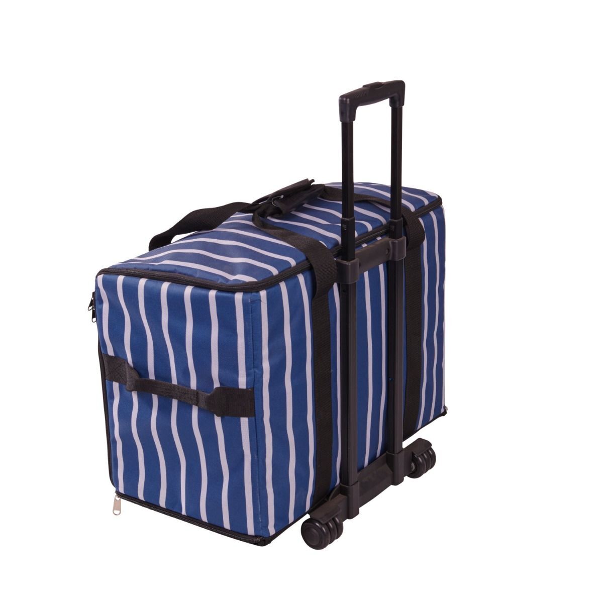 Carry, organise, and safeguard your sewing machine effortlessly with the Extra Large Sewing Machine Trolley Bag on Wheels – Navy Stripe (006107).