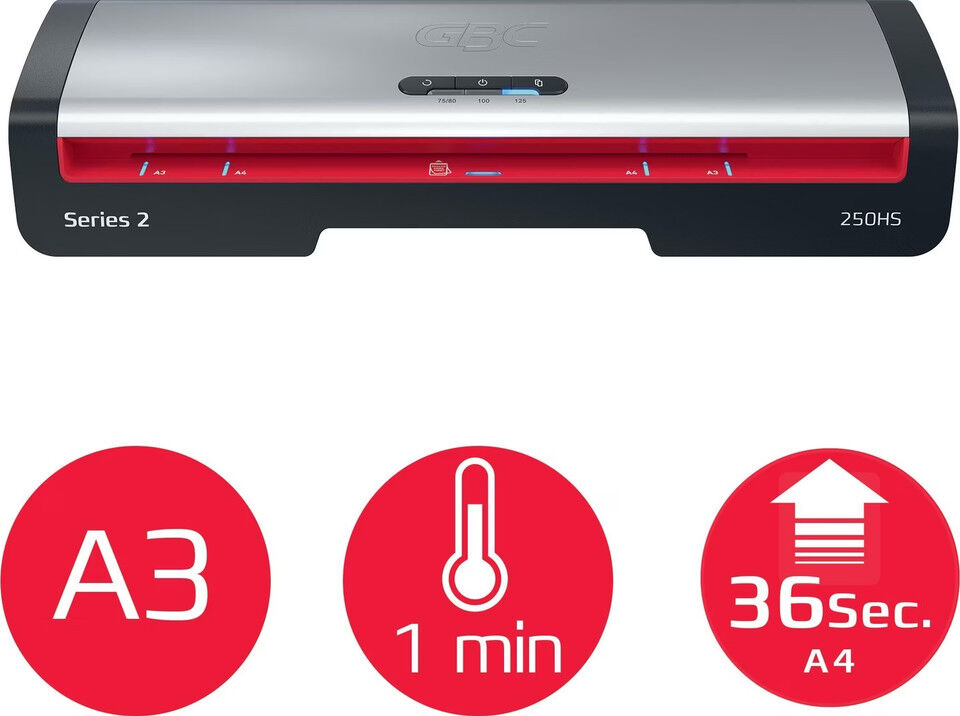 The GBC Fusion 3000L A3 Laminator is designed for frequent laminating in home and office environments, delivering consistent results with minimal wait time. Suitable for laminating documents up to A3 size, it offers a practical solution for users who laminate regularly. Ready to use in 90 seconds, the Fusion 3000L laminates a single document in approximately 30 seconds using 2 x 75 to 2 x 125 micron pouches. A roller heating system supports even lamination, while Auto Jam Detection helps prevent misfeeds. An adjustable pouch guide and exit tray keep documents aligned and flat as they pass through.