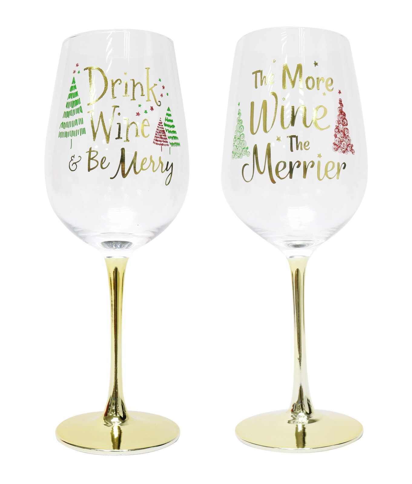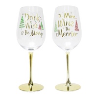 GLASSES XMAS WINE GOLD STEM ASST - SET OF 4