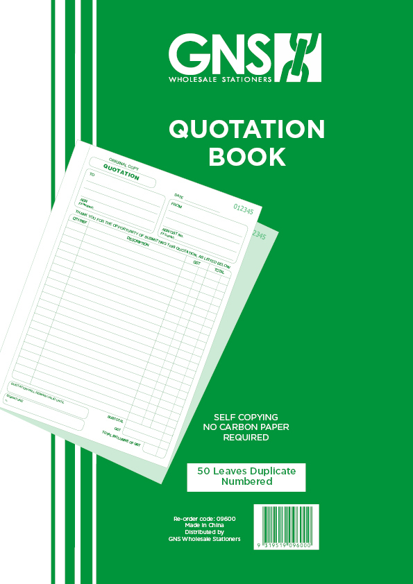 GNS A4 Quotation Quote Book 9600 Carbonless Duplicate 50 Leaf - 5 Pack