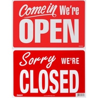 The Headline Plastic Open/Close Sign is ideal for use in businesses to allow customers to know when the establishment is open or closed. The sign has no adhesive backing which means it leaves no sticky residue behind and it great to use outdoors.