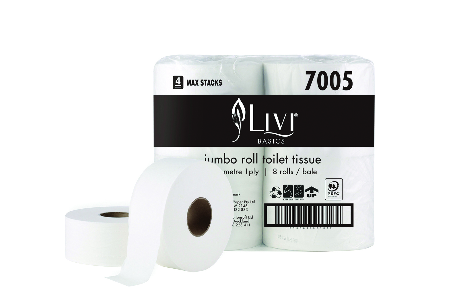 Livi Basics Bathroom Jumbo Toilet Paper 1Ply 500 Metres 8 Pack - 7005