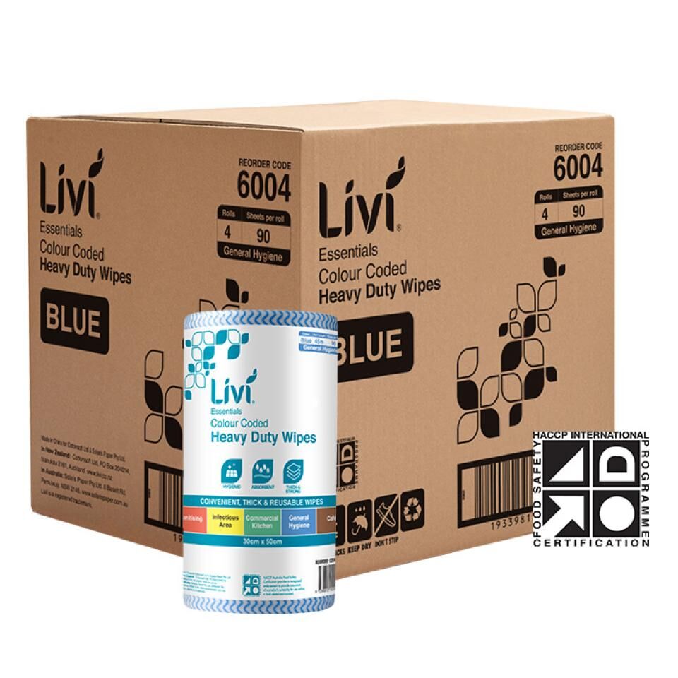 Livi Essentials Commercial Wipes Blue 90 Sheets 4 Pack - 6004