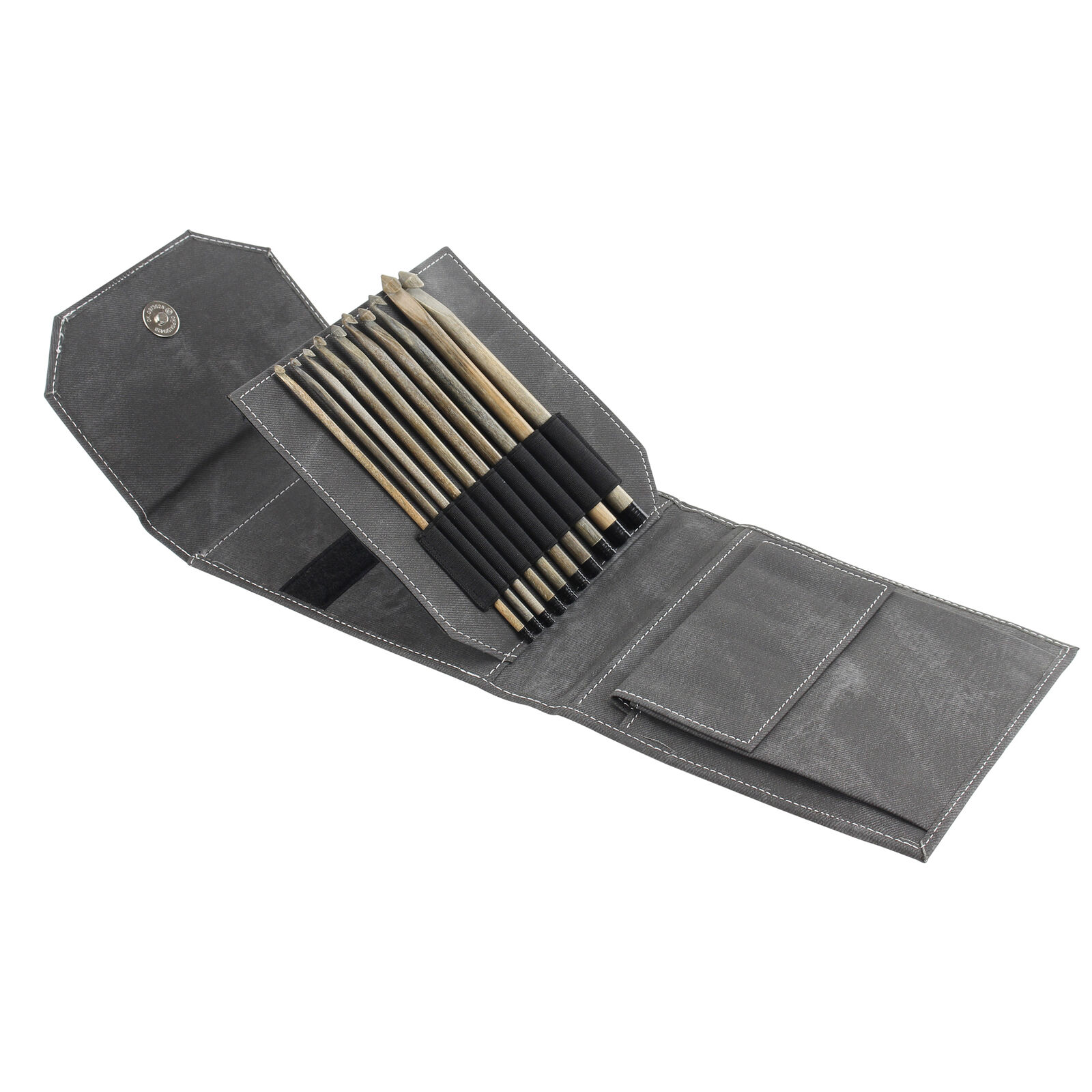 • Faux Denim Finish: Stylish grey denim look adds a modern touch to your knitting tools.