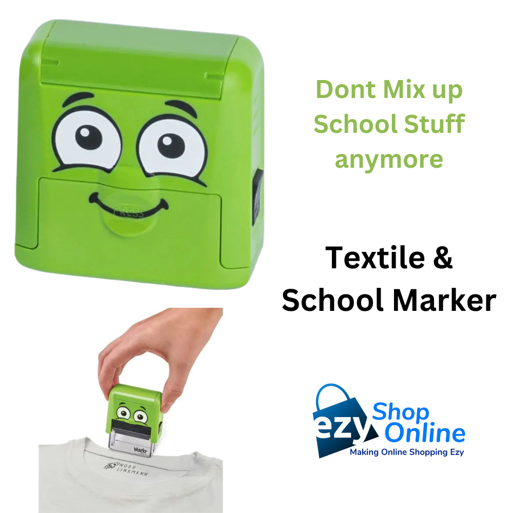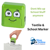 MARKY can be used directly on light-coloured fabrics, paper, cardboard, shoes and other absorbent surfaces. For personalising dark fabrics, the set includes a 1 metre long thermal iron-on tape, which is ironed on after stamping. Drink bottles, lunch boxes, pens, scissors and many other school items that cannot be stamped directly are personalised with the MARKY labels. The labels can then be put in the dishwasher together with the drinking bottle and labelled items.