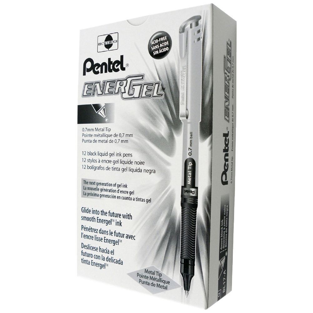 12 X Pentel Energel BL17 Metal Tip Rollerball Pen 0.7mm - Black