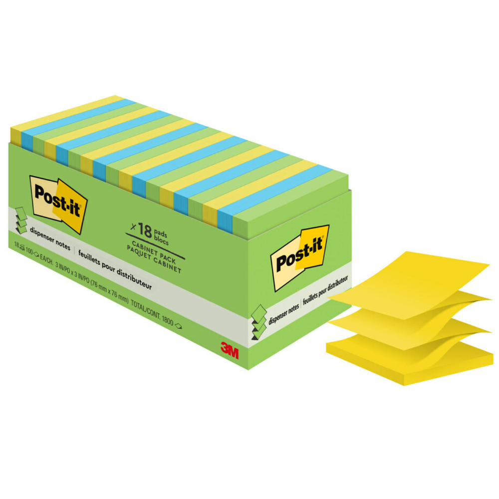 Post-it Notes are great for taking down phone numbers, writing quick reminders and even leaving short notes around your workspace. Each note has a strong self-adhesive backing so you can stick it where it will be seen and then remove it easily without any sticky residue. The notes are accordion style folded so they can easily be dispensed in a Post-it Note dispenser or used by themselves.