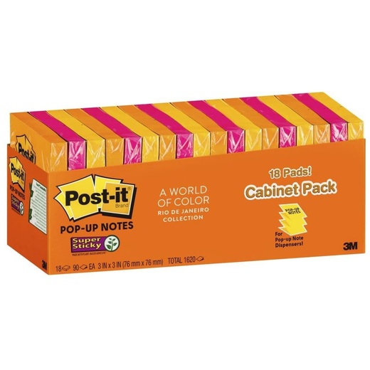 Post-it Super Sticky Pop-Up Notes 76x76mm - R330-6SST - 18 Pads - Cabinet Pack Rio De Janeiro