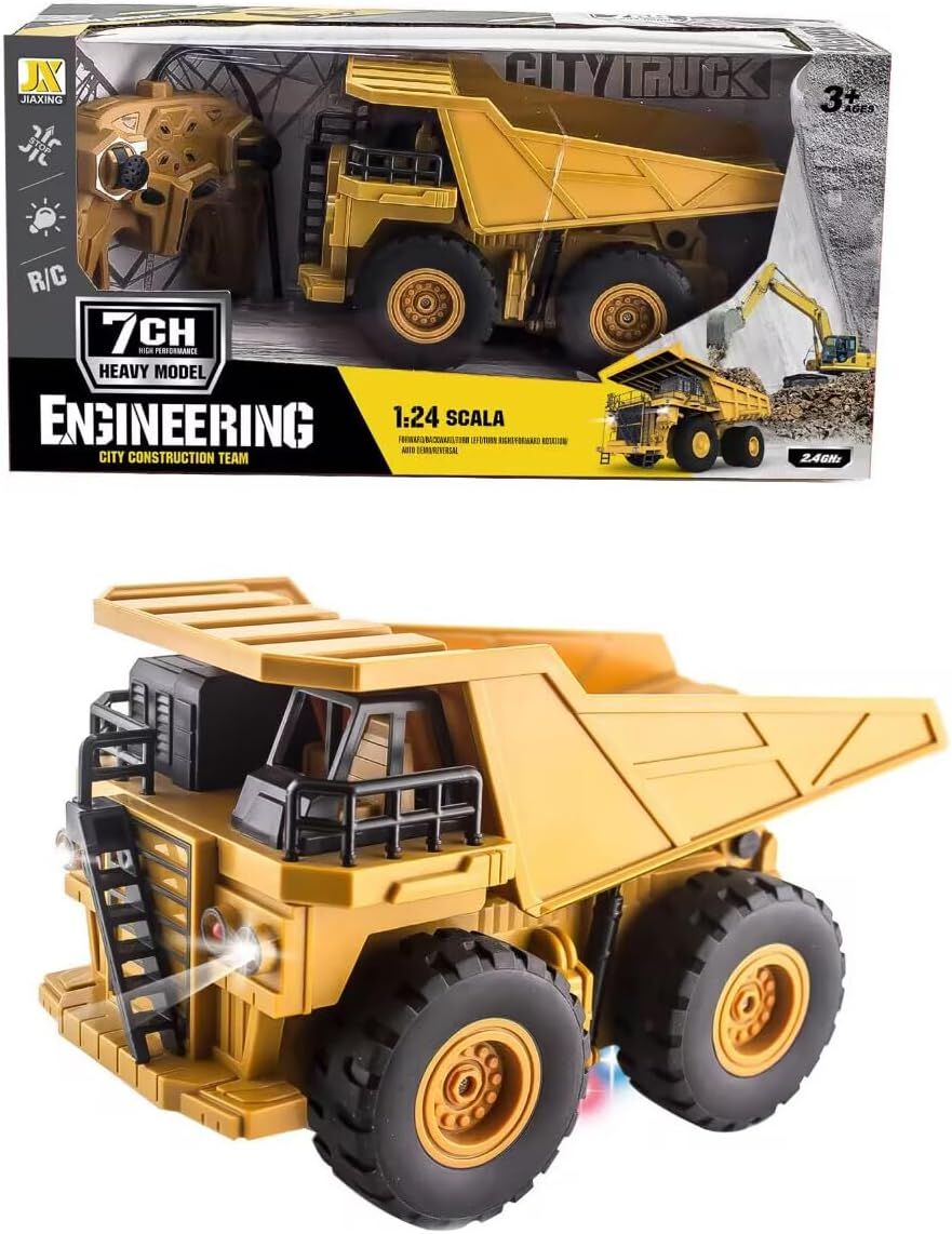 Take control of the construction site with this fully functional Radio Control Mining Dump Truck. Operating at a 2.4Ghz frequency and featuring 7 channels, this 1:24 scale truck is designed for precise and responsive control, allowing you to load and unload materials just like a real mining vehicle. * 1:24 scale dump truck.