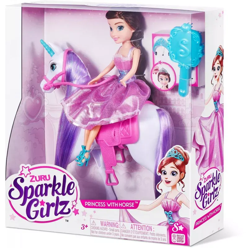 Perfect for gifting, this playset is sure to delight any child who loves dolls and fantasy adventures. Bring home the Sparkle Girlz Princess Doll with Horse Playset today and watch as your child's imagination takes flight!