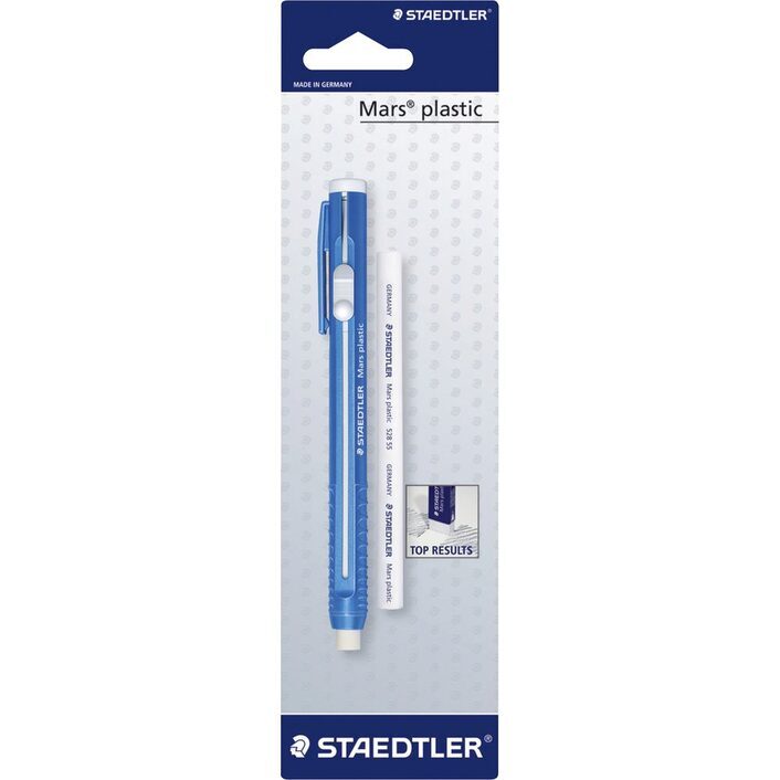 This Staedtler Mars Plastic Eraser Holder gives you extra precision thanks to the convenient barrel. It contains a soft, white vinyl eraser which will work on paper, vellum and drafting film. It will not damage the surface you are working on and you can buy refills.