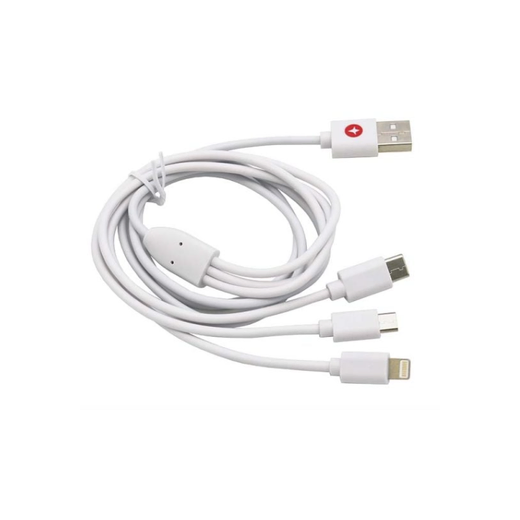 This versatile 1-metre cable delivers three essential connection options in a single accessory: USB-A to Micro USB, USB-A to USB-C, and USB-A to Lightning. Engineered for compatibility across multiple devices, it eliminates the need to carry separate cables while maintaining reliable data transfer and charging performance.