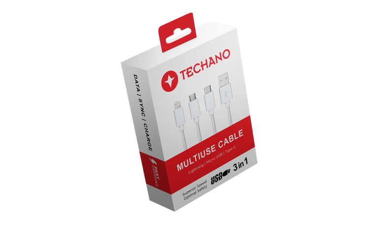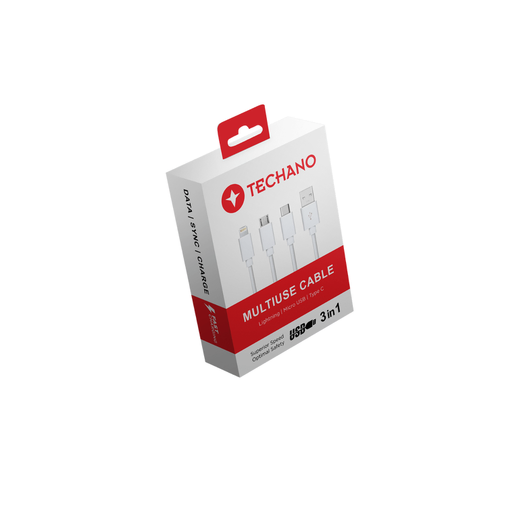 Techano Multi Use Cable 1M 3 in1 USB-A to USB C, IPH & Micro Cable
