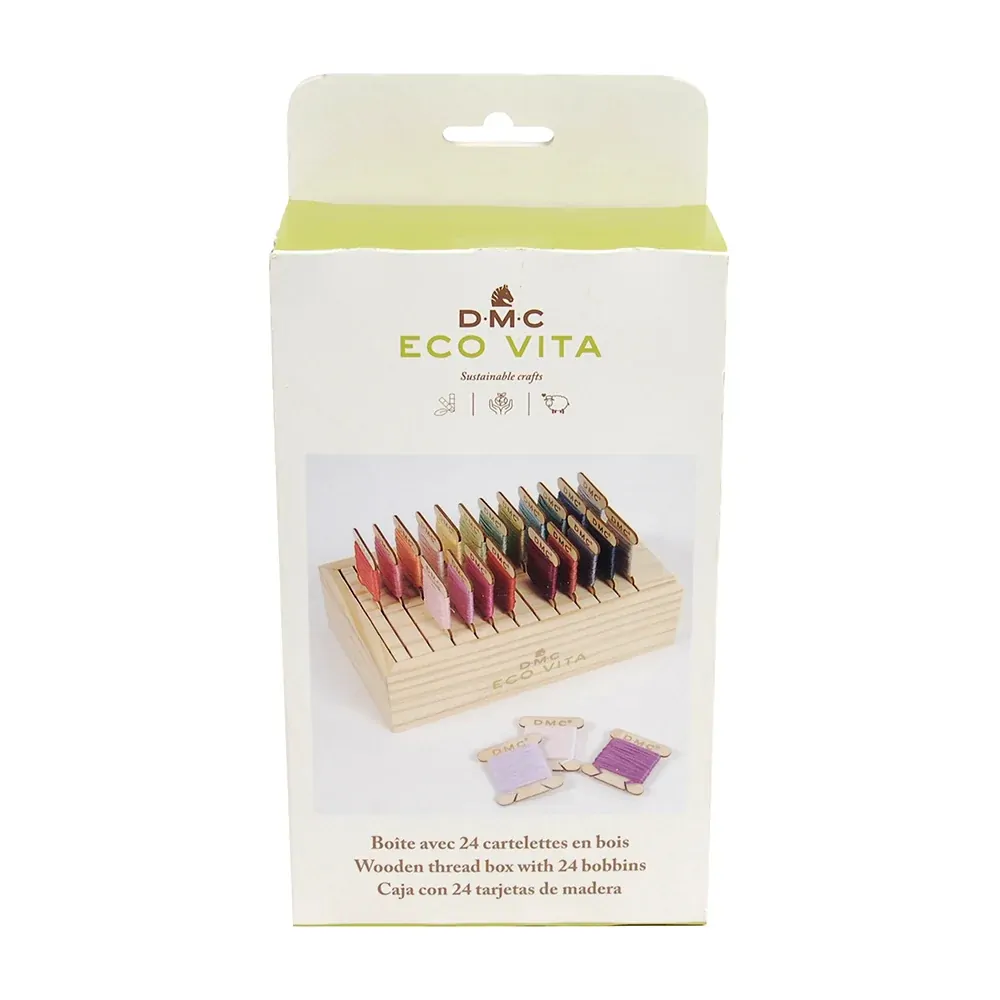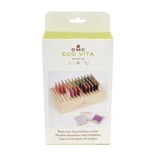 Thread Box Eco Vita DMC Organiser With 24 Wooden Bobbins 17.9x10.8x4.5cm | U2363