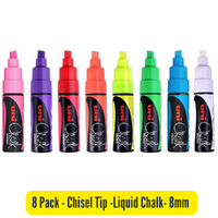 Uni Liquid Chalk Glass, Chalkboard Marker Chisel Tip 8mm Assorted - 8 Pack