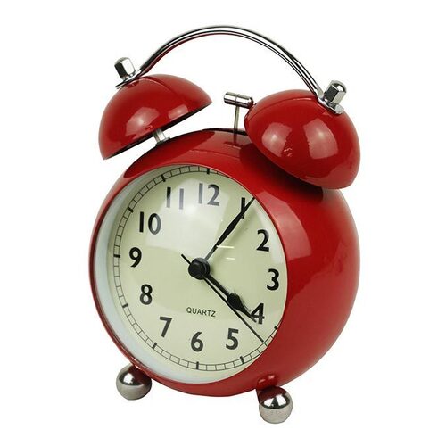 Twin Bell Alarm Clock Curve Red Metal and Glass 13cm + FREE Battery